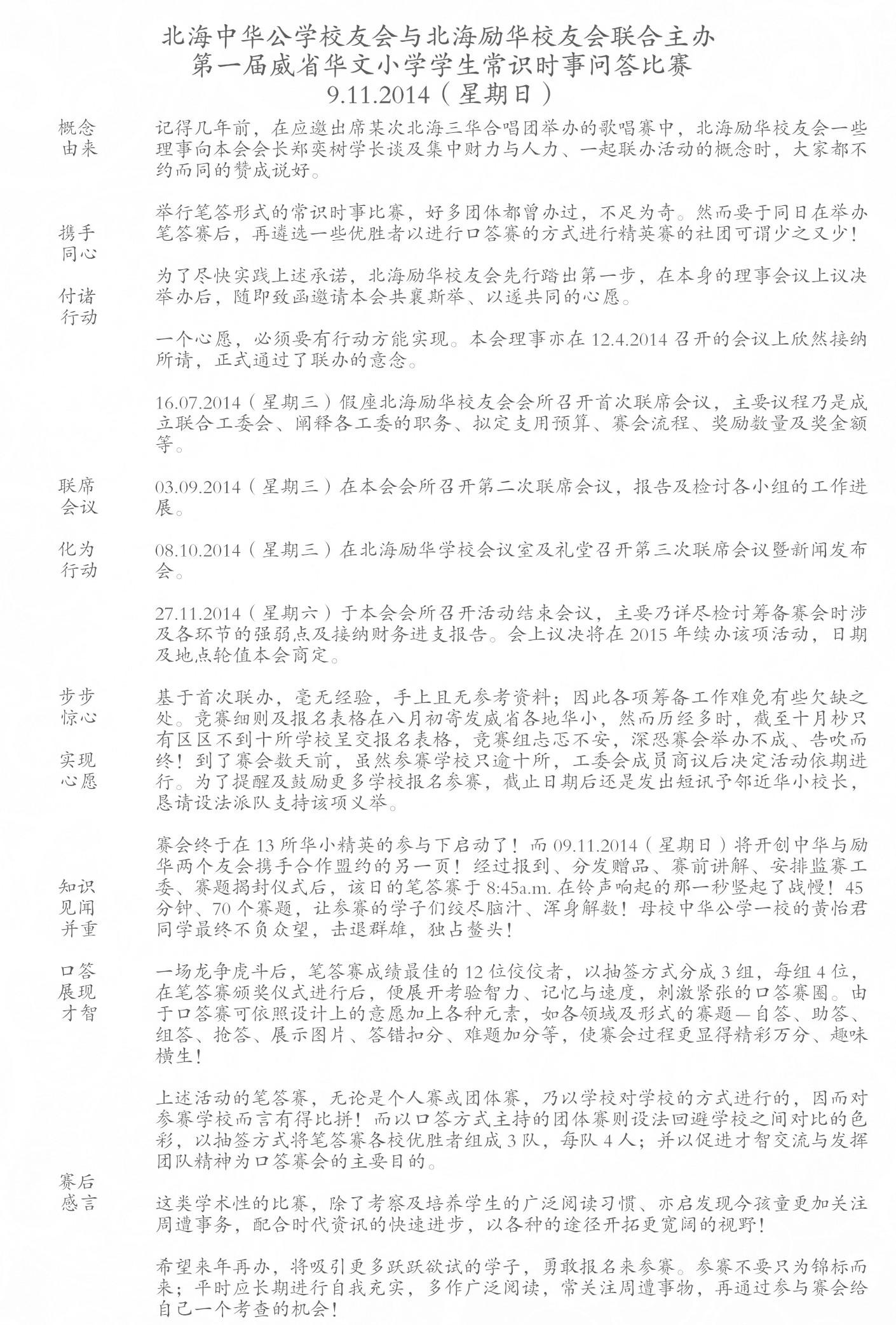 威省华文小学学生常识时事问答比赛